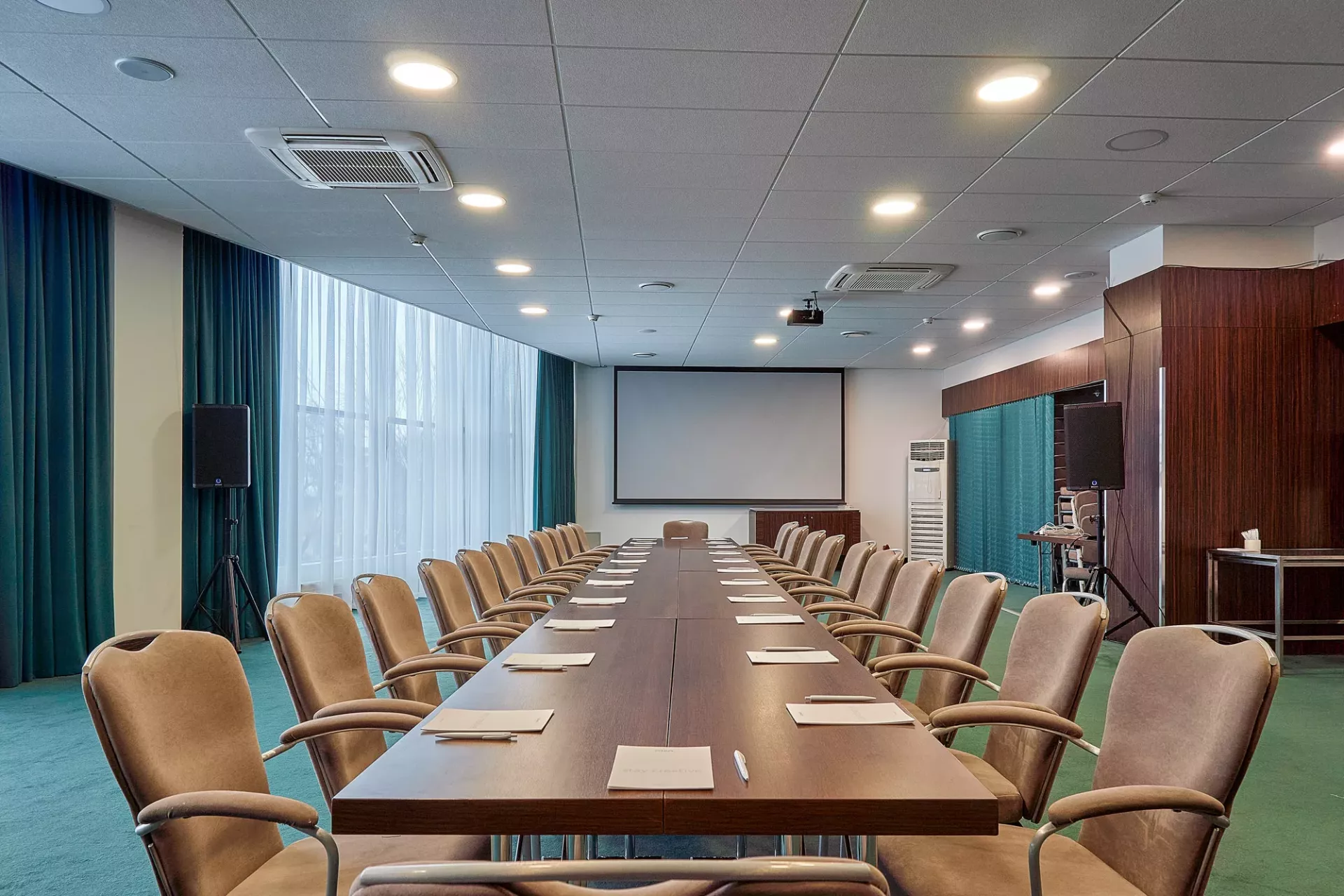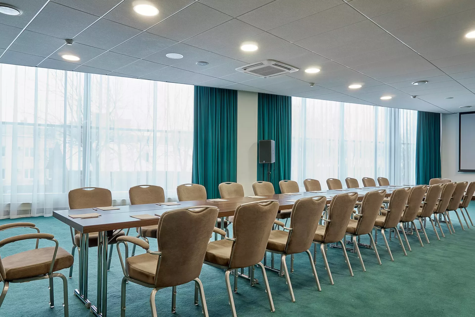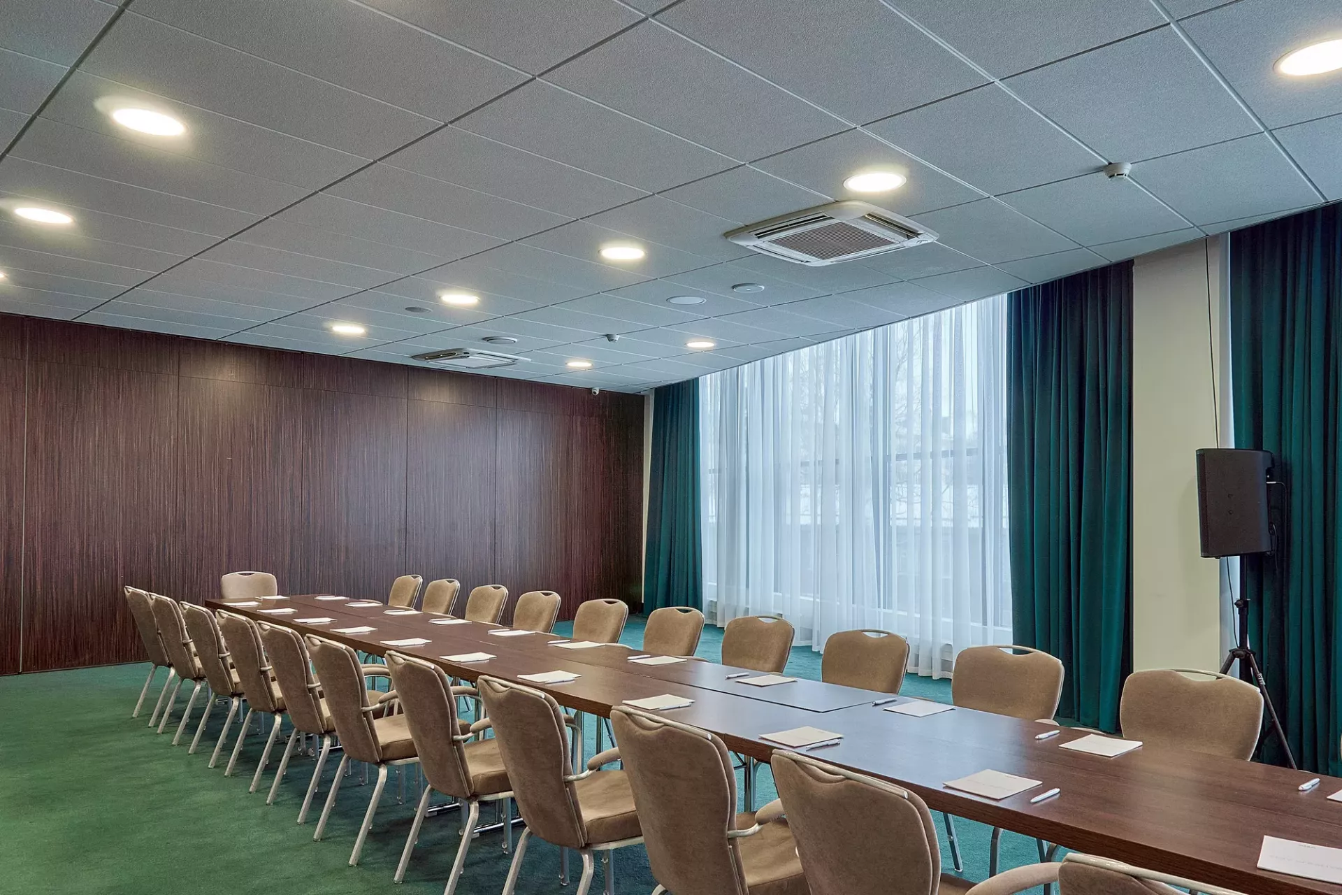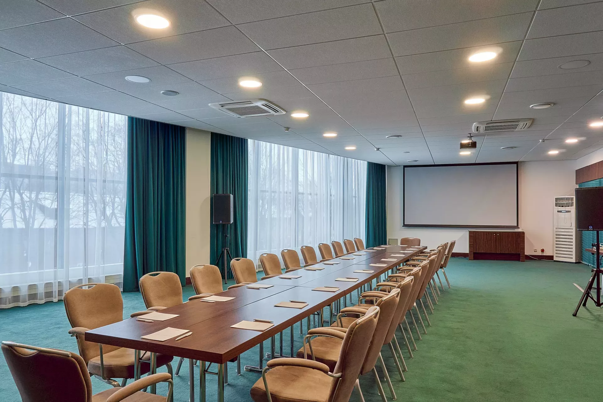 Уютный конференц-зал средних размеров идеально подходит для проведения небольших мероприятий и встреч