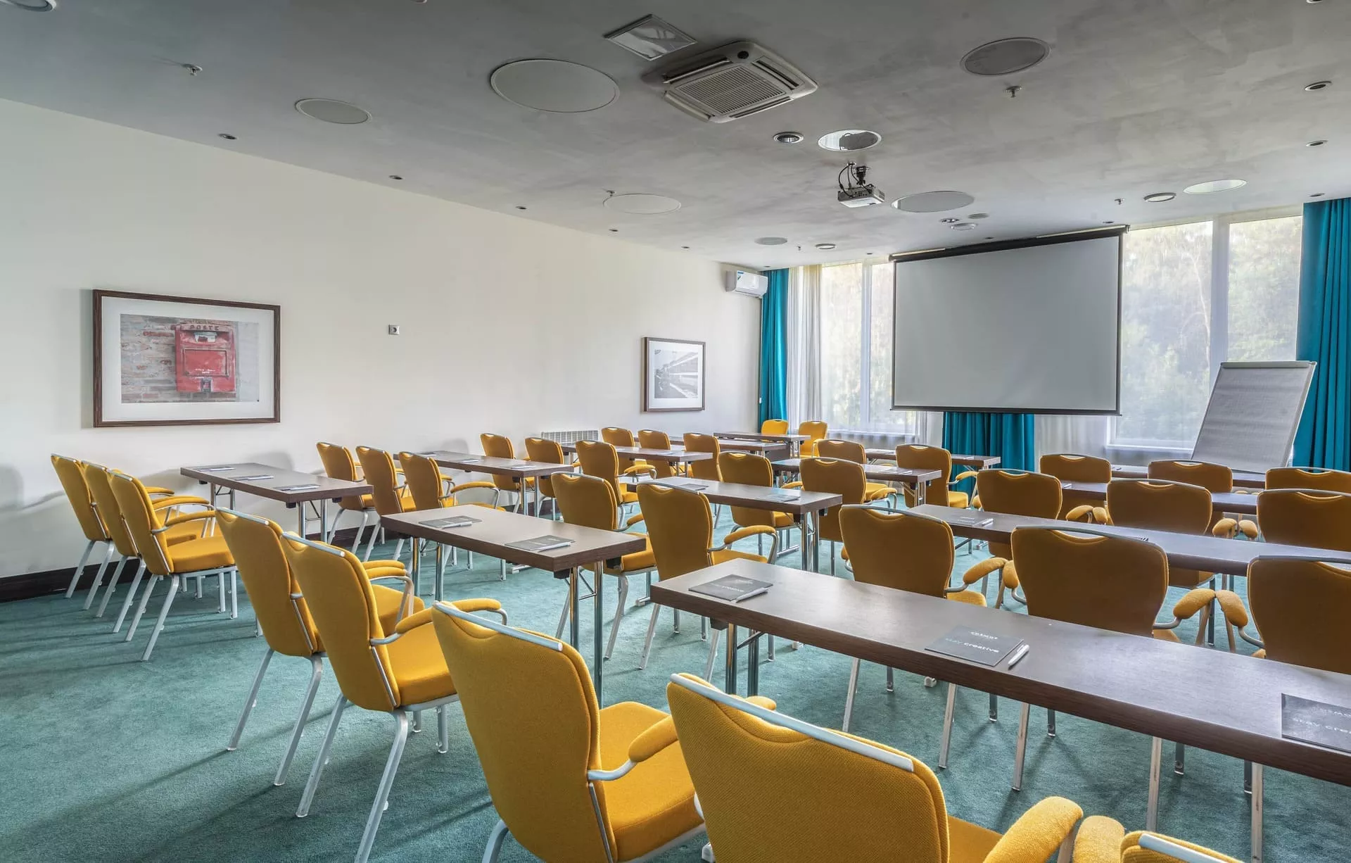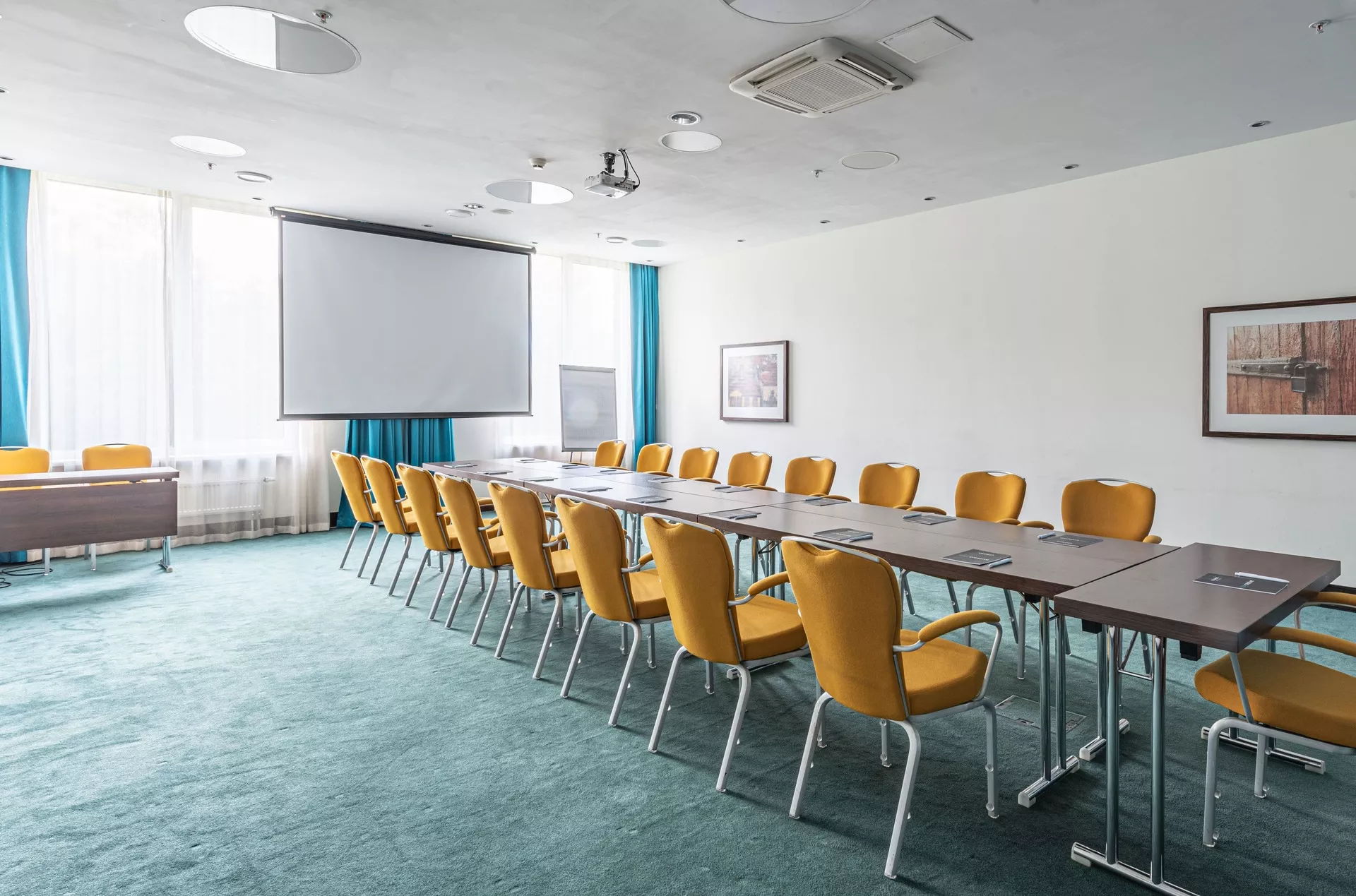 Этот зал отличается удачным расположением и подходит для проведения лекций или небольших деловых мероприятий